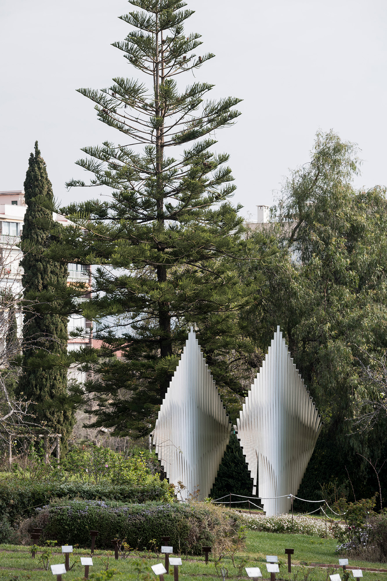 637 Artist : Alfaro, Andreu ; Title : Rombos gemelos ; Date : 1976 ; Material : Aluminium ; Dimensions : 450 × 700 × 370 cm ; Permanent location : Parque Cervantes, Barcelona, Spain ; Institution : Parque Cervantes, Barcelona, Spain ; Photographer : Ruiz, Roberto ; Date of photograph : 2020/03/13, 10:48 ; Photographic medium : Digital ; Camera : Nikon D850 ; Source : Roberto Ruiz ; Courtesy : Roberto Ruiz ; Copyright : Roberto Ruiz